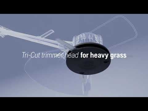 Tehokkaasti leikkaavan R25-terälaitteen lisäksi mukana on muoviterillä varustettu Tri-Cut-terälaite, joka sopii erinomaisesti hankaliin tehtäviin, kuten pihan umpeen kasvaneiden alueiden leikkaamiseen.
