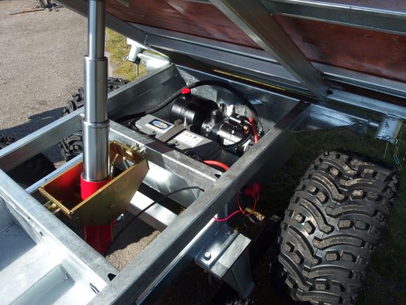 Hydrauliikka on sijoitettu lavan alle suojaan.