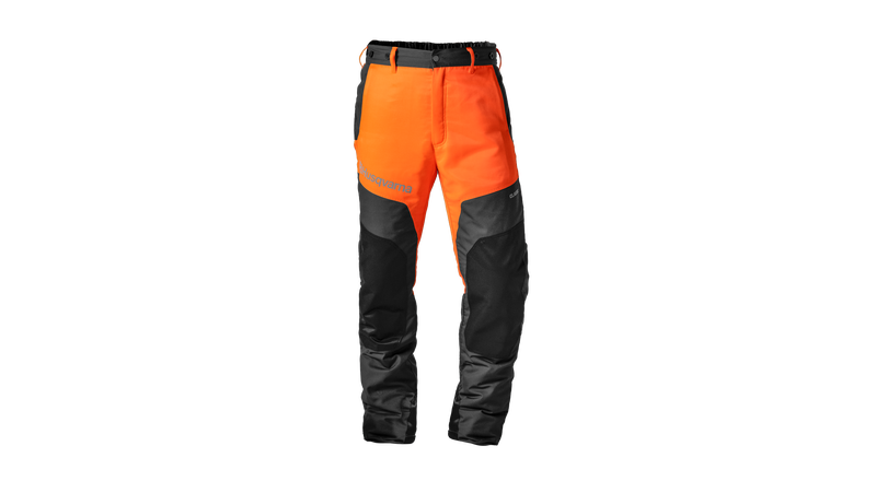 Turvallisetja kestävät viiltosuojahousut moottorisahalla työskentelevälle. Viiltosuoja peittää jalan koko etuosan vyötäröstä nilkkaan.